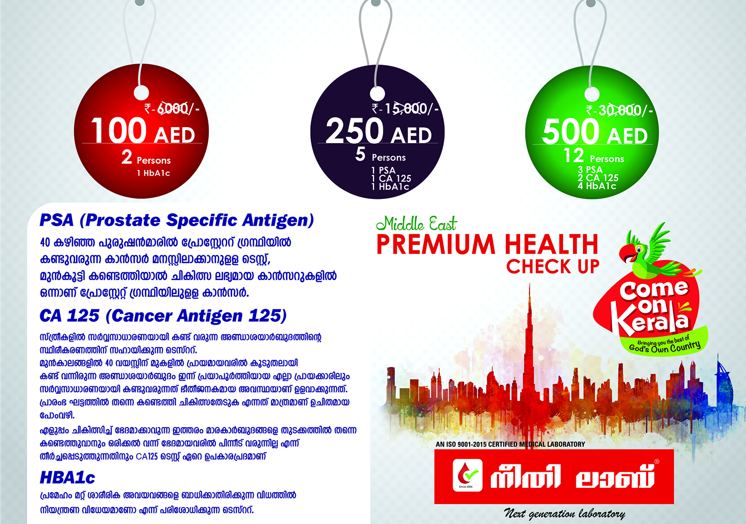 NEETHI LAB is a charity institution, and we have more than 28 fully automated branches all over in Kerala. We are purchasing all items that are required for the lab directly from the manufacturer in large quantities. So we are getting maximum discounts from all the manufacturers. We are happy to share that discounts with our patients.